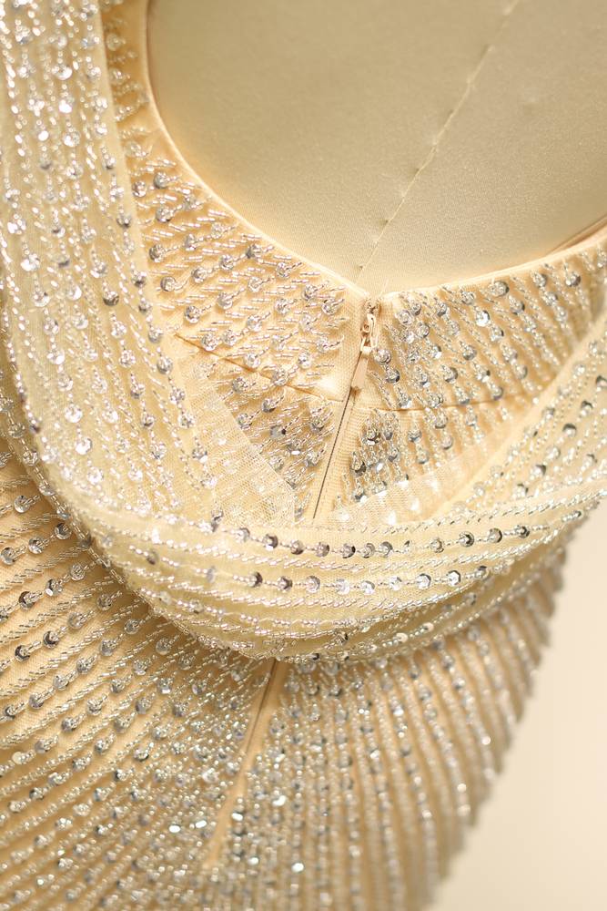 Round Sleeveless Fully Beaded Mermaid Formal Prom Dress