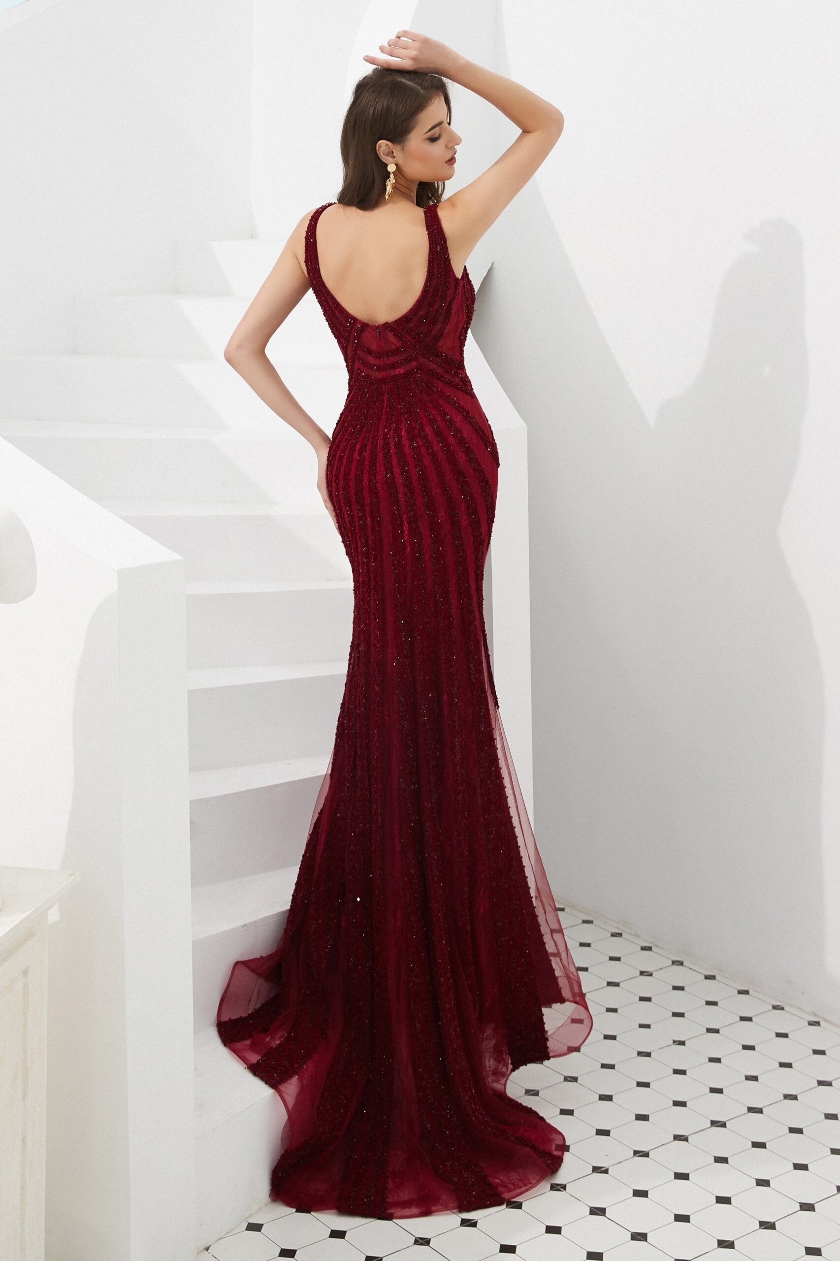 $312.00Win Red Sparkly Mermaid V-Neck Beaded Party Prom Dress